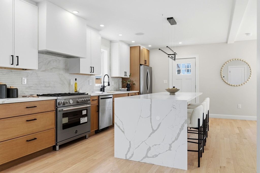 Kitchen: Flooring - Hardwood, Dining Area, Pantry, Countertops - Upgraded, Kitchen Island, Exterior Access, Open Floorplan, Recessed Lighting, Stainless Steel Appliances, Gas Stove, Lighting - Pendant